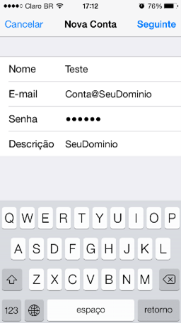 - A seguir, preencha com os seguintes dados: